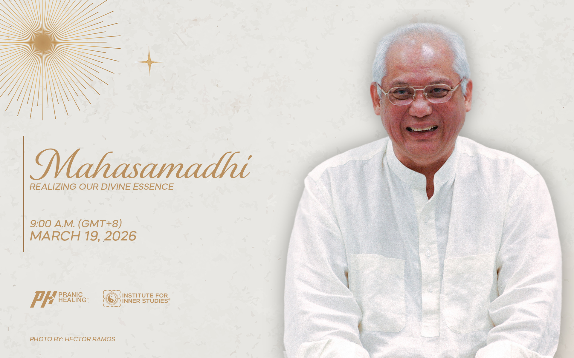 Join us for a special video presentation honoring his legacy and the journey toward “Realizing Our Divine Essence” on the 19th of March 2026 at 9:00 AM (GMT+8) on www.globalpranichealing.com.